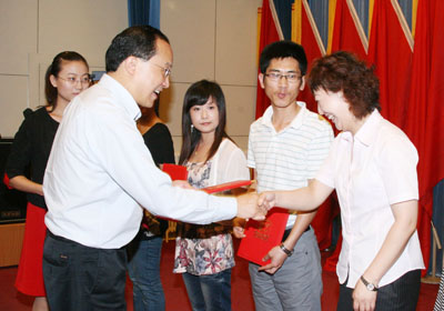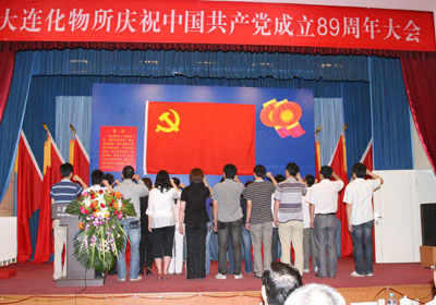 大连市科技局纪委书记李洪涛在讲话中指出,大连化物所今天的活动形式简练而隆重。在党的生日之时体现了所党委、党支部和党员同志对党的真诚和信念。希望大连化物所的党建工作,继续坚持围绕中心,服务大局,结合实际的特点,在“创先争优“活动中,进一步加强党的基层组织建设,充分发挥好党支部的战斗堡垒作用和党员的先锋模范作用,以优异的科研工作业绩和党建工作业绩,向党的90华诞献礼。