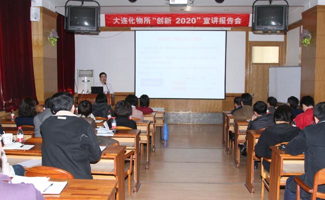 为全面了解把握中科院“创新2020”的总体思路、战略目标、工作任务以及研究所实施“创新2020”的具体举措,做好“创新2020”实施过程中的管理与服务,促进研究所科技创新持续跨越发展,3月28日,大连化学物理研究所党委组织召开了“创新2020”宣讲报告会。报告会由办公室主任杨宏主持。党委书记、副所长包翠艳,党委副书记、副所长冯埃生,研究室党支部书记以及管理及支撑部门全体同志参加了报告会。