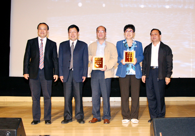 最后,大连市政协副主席董长海、大连化物所副所长李灿共同为凌锋教授、鲍遇海教授赠送了“大连化物所文化讲坛贡献奖”奖牌。