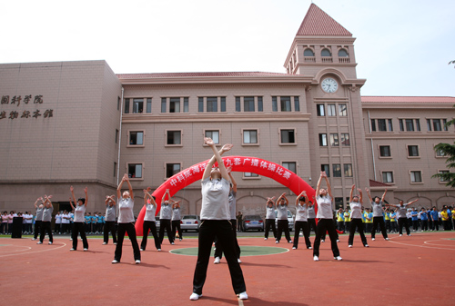 为贯彻落实国务院颁布的《全民健身条例》,广泛开展职工健身活动,丰富体育健身活动的内容和形式,推动全所职工的健身热情,海洋研究所5月29日举行了第九套广播体操比赛。所长孙松、党委书记王启尧,副所长杨红生、王凡应邀观看了比赛。