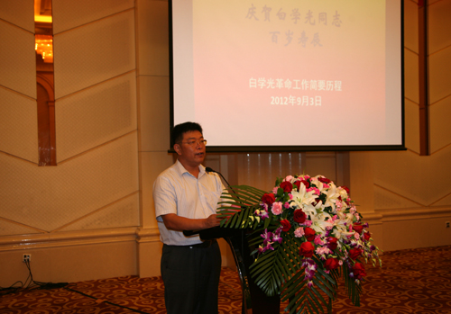 9月3日,中科院海洋所离休干部、老红军白学光同志百岁寿辰座谈会和百岁寿宴在黄海饭店举行。