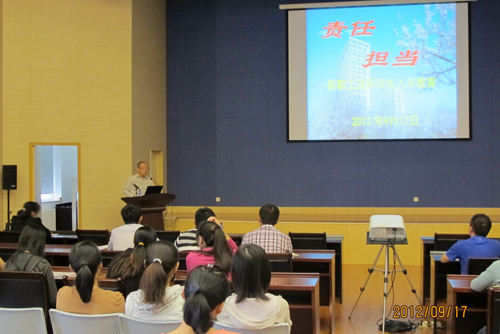 9月13日上午,骆永明副所长(主持工作)为新进人员做了第一场报告。他向大家介绍了研究所的基本情况与近期工作进展,并结合海岸带研究的国际前沿讲解了海岸科学的内涵和外延。9月17日上午,党委书记兼副所长高玲瑜做了题为“责任与担当”的讲座。他首先回顾了研究所的建所历程,随后又对世情、国情、院情、所情作了简要介绍,然后从如何做人、如何做事、团队精神、科研道德等方面为大家提出了几点要求。综合办公室王德强主任以自己多年从事人事工作的经验积累,为大家做了一场如何规划自己的职业生涯的报告,使新入所的员工和学生受益匪浅。国家科学图书馆兰州分馆陈松丛老师也应邀来所做了关于专利检索与文献管理软件方面的报告。此外,综合办公室、财务处、分析测试中心、科技处、人事教育处等部门有关人员也相继介绍了本部门相关的规章制度和办事流程。
