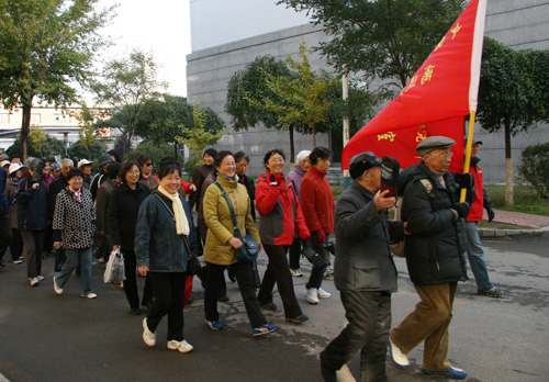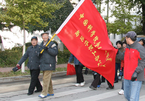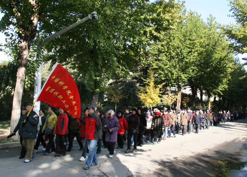 在浩浩荡荡的行走队伍中,无论青丝还是银发,无论矫健还是蹒跚,每个人都兴高采烈,精神抖擞地展示着金属所离退休职工晚年的幸福和安康。