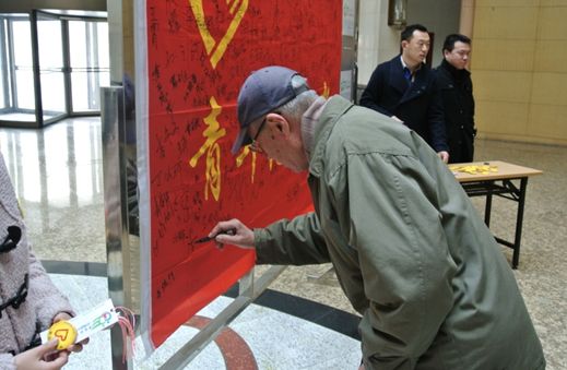 青年志愿者协会在成立之日,并没有选择召开隆重的庆祝大会,而是通过志愿者宣传活动来庆祝自己组织的诞生。上午11时许,志愿者将提前做好的“雷锋精神,永放光芒”宣传展板布置在宿舍楼一楼大厅,并发起“学习雷锋点滴做起,快乐志愿心系公益”的志愿者签名活动。得到了广大职工和研究生的热烈响应和积极参与,纷纷上前签名,并和志愿者交流。一些退休老同志和餐厅工作员工也加入到活动中。最后,志愿者向大家分发协会成立纪念书签和印有中国志愿者标志的会徽以示纪念。