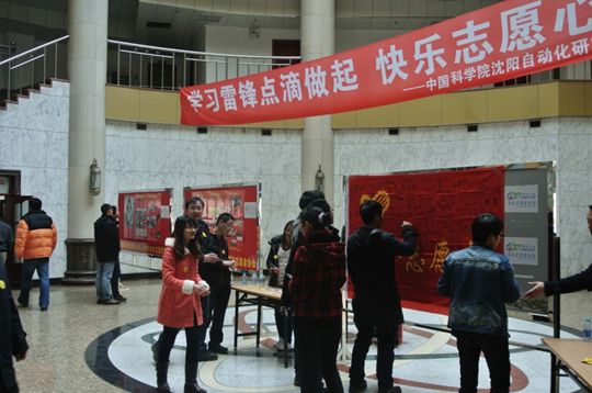 今年3月5日,恰逢毛泽东同志“向雷锋同志学习”题词发表50周年纪念日,同时也是第13个“中国青年志愿者服务日”,以此为契机,沈阳自动化研究所青年志愿者协会在这一天正式成立,并首次举办大型志愿者活动。人教处薛娈立老师出席了此次活动。