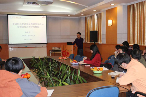 在3月29日、4月19日举行的材料计算模拟沙龙第二十三期、二十四期活动中,分别邀请到材料加工模拟研究部的郑成武副研究员及高性能陶瓷研究部的王京阳研究员作报告。郑成武副研究员作了题为“普碳钢形变诱导动态相变及后动态相变行为的介观模拟”的学术报告,主要阐述了如何利用介观尺度的元胞自动机模型对形变诱导铁素体相变及其后动态相变行为进行模拟。王京阳研究员则以“Genome Approach for Advanced Nano-laminated Carbides and Nitrides”为题目,以耐高温纳米层状碳/氮化物体系为例,介绍了金属所近年开展的关于力学和热学性能的理论预测,以及新材料制备和性能研究的进展。