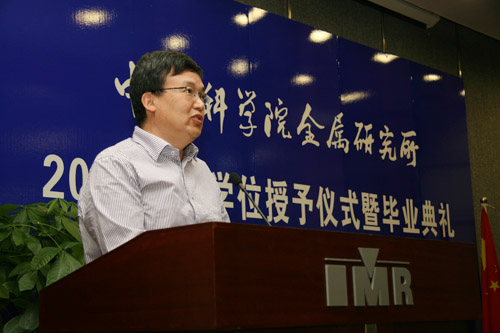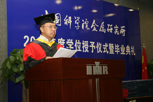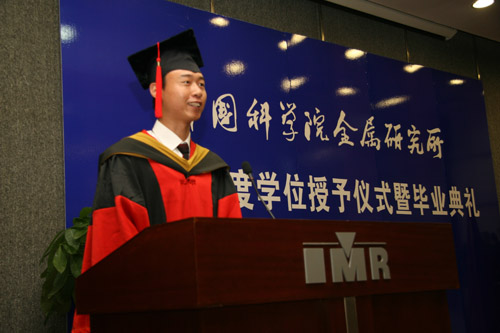 毕业生代表王晶同学代表全体毕业生致毕业感言,他表示将把接过的证书当成新的起点,在今后的人生路上,踏实做人、诚实做事,耐得住寂寞、撑得住痛苦,为自己、为家人、为社会、为祖国做出问心无愧的贡献,并用“专注科学,报效祖国”与同学们共勉。导师代表徐坚研究员在“担当吧!金属哥,金属妹”的演讲中表示,他深切地感到金属所办好研究生教育的重要性和办好研究生教育的自豪感。为了实现中国梦,建设创新型国家,他告诫年轻的“金属人”,只有树立正确的价值观,放眼世界,心系普天下苍生,才会懂得为谁而担当;只有不断挑战自我、充实自我,才有资质和实力去担当。