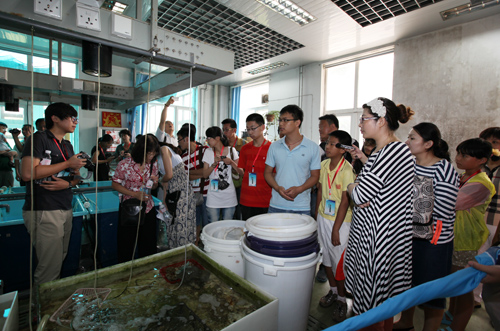 观察团先后参观了科普展厅、水母实验室、贝类养殖实验室、中科院超级计算青岛分中心和中国科学院海洋生物标本馆,听取了海洋所历史沿革、重点研究领域、科研成果和人才队伍等情况介绍,并提出了许多市民关心的海洋科学问题,与青年科研人员、研究生进行了现场交流。团委委员杨光博士和标本馆王永强老师还应邀分别做客青岛新闻广播直播间,与岛城市民进行了互动交流。