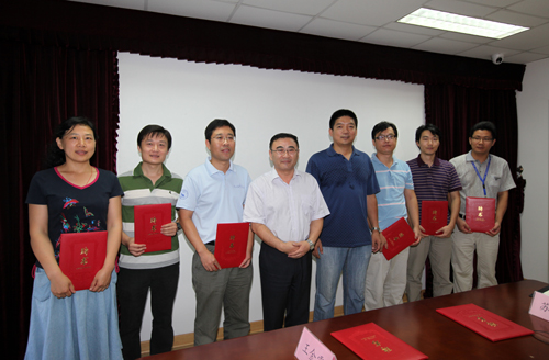 杨红生副书记和王兵委员为首批聘任的8名研究生班级辅导员颁发了聘书。首批辅导员由研究室优秀支部书记和委员组成,分别是张光涛(2011级秋季博士班)、万世明(2012级春季博士班)、王珍岩(2012级秋季博士班)、姜鹏(2013级春季博士班)、徐振华(2011级硕士一班)、张继泉(2011级硕士二班)、王金霞(2012级硕士一班)、张立斌(2012级硕士二班)。