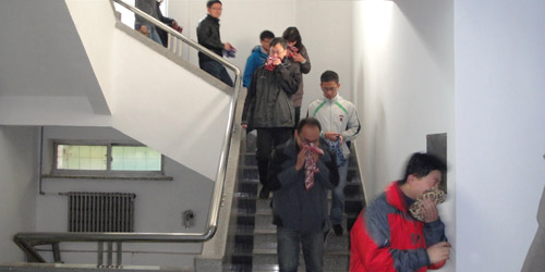 为了使疏散演练达到更好的效果,安保办进行了充分的准备,为参加演练的每位职工和学生发放了毛巾,用来模拟捂住口鼻,防止吸入有毒烟气。在演练过程中,各楼职工和学生都能够认真地按照事先的安排,安全有秩序地从各安全通道和出口迅速疏散到楼外,取得了较好的效果,达到了演练预期的目的。