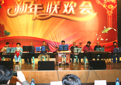 开场舞《好运来》拉开了联欢会的序幕,火红的绸带热情舞动,舞出了老同志热爱生活的昂扬激情;老同志自创的三句半《抒情怀》、《小日本鬼子》,吼出了老同志的爱与憎的炙热情怀;男生小合唱《故乡的小路》、女生四重唱《今天是你的生日》演绎了老同志的悠悠深情;女生独唱《月光泪》、《蓝色的蒙古高原》和男女声弹唱《白毛女》,展示了老同志美妙的嗓音;京剧《智斗》、《霸王别姬》、《梨花颂》,给听众送来了国粹经典别样的听觉享受;民乐合奏《春江花月夜》、《金蛇狂舞》、葫芦丝齐奏《高山顶上修条河》、《山清水秀好风光》,令听众沉浸在跳动的音符之中;藏族舞蹈《听一听》舞出了藏族人民的虔诚与喜乐;配乐诗朗诵《在太空,你谱写着惊天动地的诗篇——献给钱学森》被三对老夫妻演绎得淋漓尽致,六位老人款款地道出了科研人对钱学森的万般崇敬;联欢会在老年大学合唱团的《远飞的大雁》和《七律 到韶山》优美的旋律中落下帷幕。