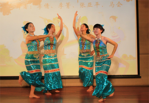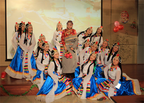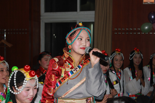 西藏班的小伙伴儿们则带来了具有浓郁民族特色的歌舞。一曲高亢的《玛吉阿妈》和藏族原生态的舞蹈《阿妈的酥油灯》,则展现了藏族同胞能歌善舞的艺术天赋,让独唱变成了大合唱,台上台下互动交融,高潮迭起。晚会的最后,双方的老师在同学们热烈的掌声中即兴表演了歌舞。一台精彩、火爆的晚会使远离亲人的藏族小伙伴儿们感受到节日的喜庆气氛,也让金属所的师生们从藏族学生纯真、友爱的表现中得到了心灵的净化。