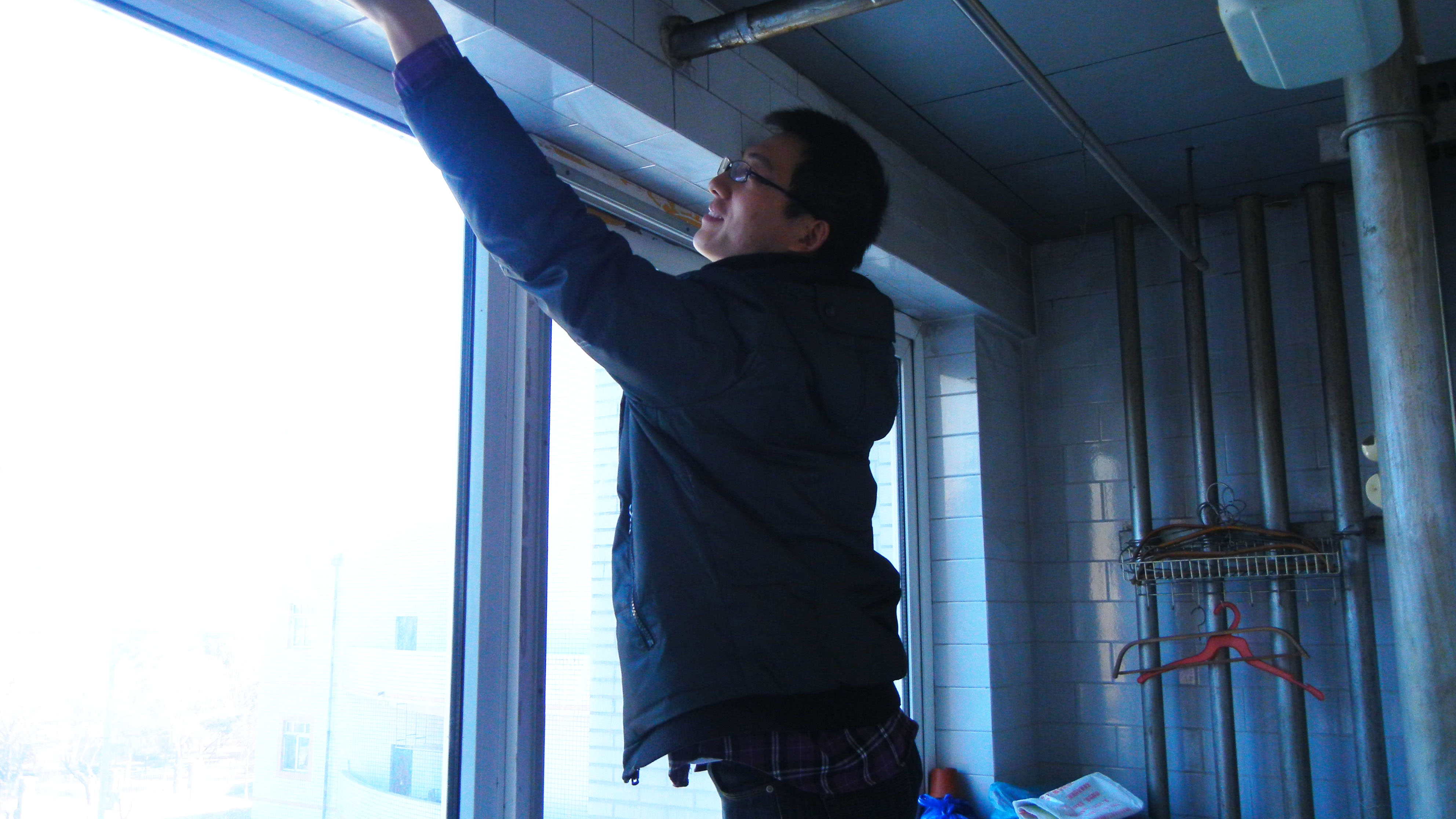 志愿者为离退休老同志擦玻璃