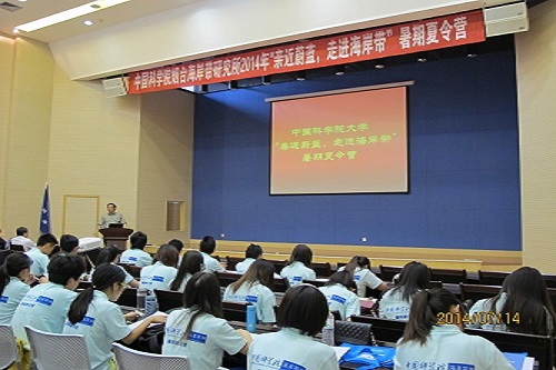 本次“亲近蔚蓝,走进海岸带”夏令营受中国科学院大学资助,已是烟台海岸带所举办的第五届主题夏令营活动?;疃浴叭现0洞叮平0洞;ぁ蔽谥迹蔽逄?,受到了广大学子的支持,共收到申请材料200多份,营员来自全国20个省市的40多所高校,同时,今年报考中国科学院大学的两名准大学生也慕名参加了此次夏令营活动。