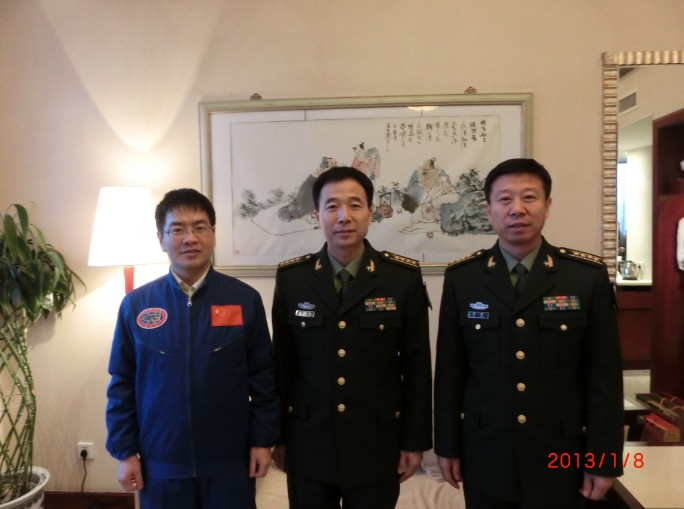 刘开周(左一)与山西籍英雄航天员景海鹏、刘旺共同获评“2012感动山西十大人物”