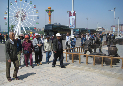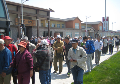 为了确?;疃Ч腿嗽卑踩?,400余名老同志分两批两天进行活动,每天5台大客车载着200余名老同志首先前往位于瓦房店谢屯镇的香洲田园城旅游度假区参观游览。老同志们结伴参观了度假区中基本建成的香洲老年大学、香洲敬老院、酒文化一条街、葡萄园等,感受了新农村建设的快速发展。