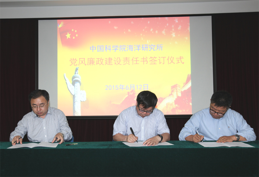 6月12日上午,海洋研究所举行了党风廉政建设责任书签订仪式。所长孙松;党委书记兼副所长王凡;副所长李铁刚;党委副书记、副所长兼纪委书记杨红生;副所长王辉出席仪式。所长助理、党委委员、纪委委员、研究室正副主任、管理和支撑体系负责人共50余人参加了签字仪式。仪式由纪委书记杨红生主持。