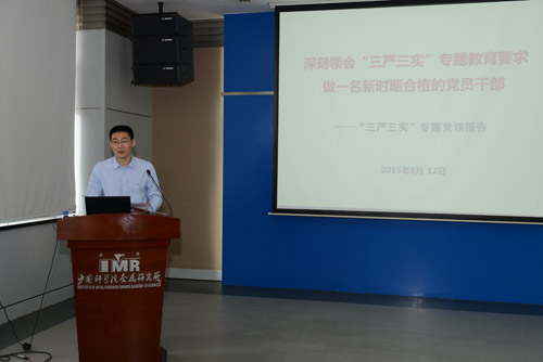 按照中国科学院党组和沈阳分院党组关于开展“三严三实”专题教育活动的部署和要求,6月12日上午,金属所举办了“三严三实”专题教育动员部署会议。所党委副书记郝欣同志作了题为《深刻领会“三严三实”专题教育要求,做一名新时期合格的党员干部》党课报告,并代表所党委就金属所开展“三严三实”专题教育动员工作进行了动员和部署?;嵋橛筛彼?、党委委员张健同志主持。所领导班子成员、党委委员、正、副处领导干部、党总支和党支部书记等近50人参加会议。