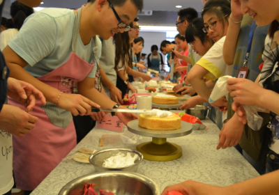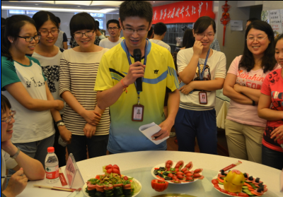 活动一开始,所有参赛选手和观众在专业老师的指导下,学习如何包粽子,并齐心协力完成200多个粽子。热身之后,首先进入“创意凉菜”环节。各队的凉菜造型各异,口味独特,有“孔雀东南飞”、“夏日风光”、“清凉一夏”等,更有DNL08研究部调制的“秘制蘸酱”,获得评委们的好评。之后的“精雕蛋糕”环节,选手们更是创意爆棚,大家用水果拼出了不同图案,“盛夏的果实”、“哆啦B梦”、“花开富贵”等,并辅以雕花,不仅给味蕾最高的感受,更是一场视觉盛宴,充分展示了所内师生灵活的思维和动手能力,五室的创意双层蛋糕“谢谢你的爱”最终赢得评委的一致赞赏。