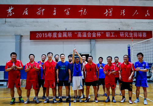 7月1日晚,随着高温合金研究部代表队和后勤管理处代表队冠亚军巅峰对决的结束,金属所2015年度“高温合金杯”职工、研究生排球赛也圆满落幕。所长助理、工会主席孙晓峰研究员出席了赛后的颁奖仪式,并向获得冠军的球队颁发了奖杯。