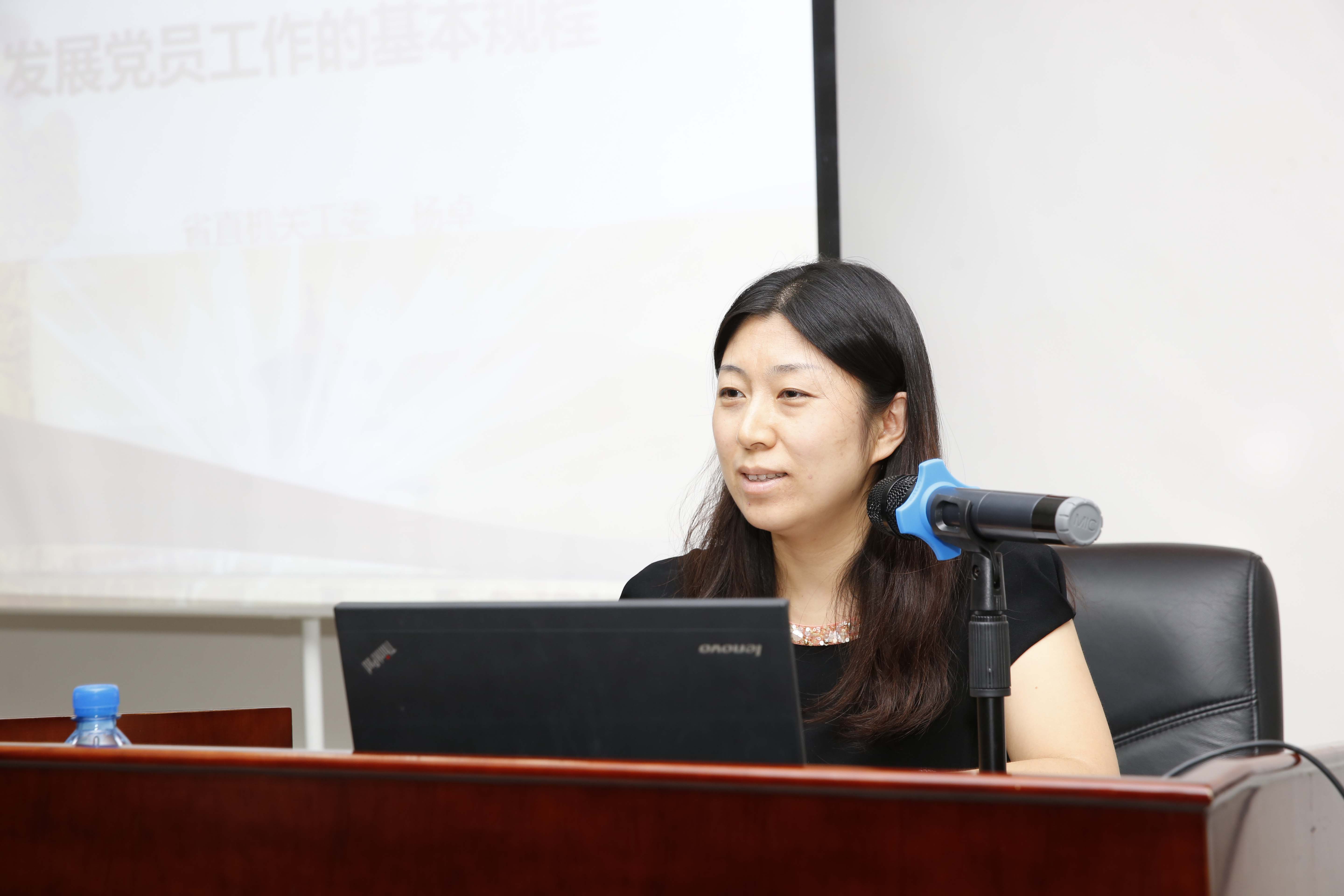随后,在沈阳自动化所挂职综合办副主任的辽宁省直工委组织部副部长杨卓为与会人员介绍了新时期做好党员发展工作的辅导报告。她从入党申请、入党积极分子的确定培养教育考察、发展对象的确定和考察、预备党员的接收以及预备党员的教育考察和接收五个方面为与会人员详细介绍了发展党员工作的基本规程。