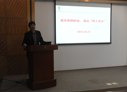 纪委书记郭秀银以“筑牢思想防线, 落实‘两个责任’”为题,介绍了院党组、组局有关反腐倡廉建设要求,院及分院反腐倡廉形势与存在的问题,最后向新任干部提出要肩负起党风廉政建设责任的具体要求。