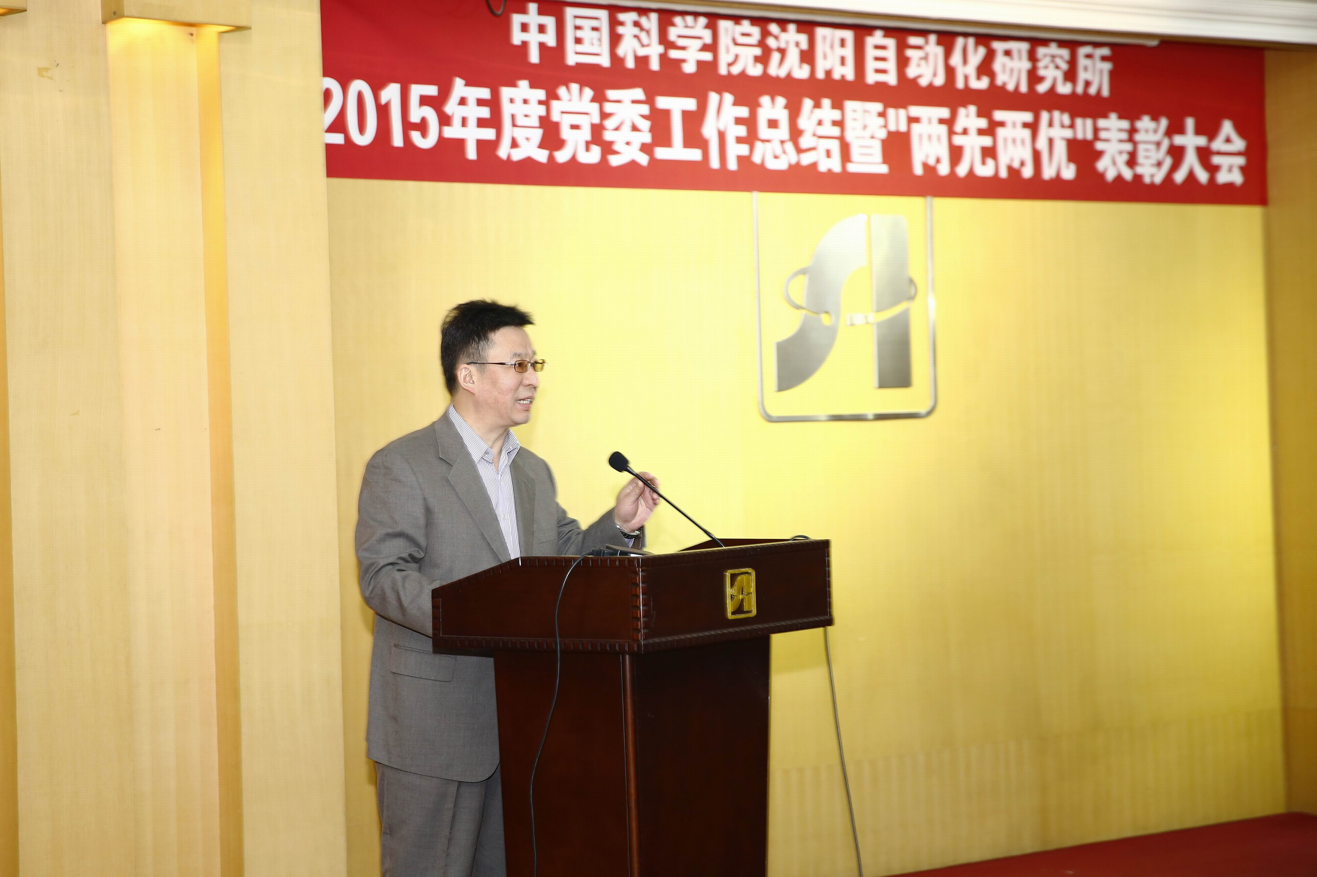 2月3日上午,中国科学院沈阳自动化研究所召开了2015年度党委工作总结暨“两先两优”表彰大会。所长于海斌、党委书记兼副所长桑子刚、副所长兼党委副书记梁波和王天然院士及全所职工党员、所投资公司、研究生和离退休党支部代表参加了大会?;嵘希W痈兆髁恕?015年度党委工作总结及2016年工作部署》报告,并对获得2015年度“两先两优”的集体和个人进行了表彰。大会由梁波主持。