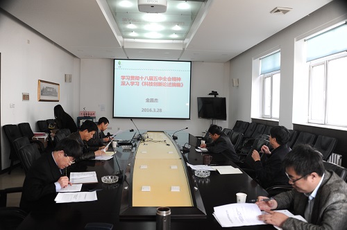 为了深入学习领会党中央十八届五中全会精神、《习近平关于科技创新论述摘编》主旨思想,2016年3月28日上午,中科院沈阳生态所党委中心组组织了集中学习。所党委书记金昌杰在会上系统地阐述了在“中国梦”的核心背景下,十八届五中全会上提出的关于“新形势、新思想、新目标、新理念、新要求、新举措”的实质内涵,并强调要重点领会“五大发展理念”的核心要义。随后,金昌杰以学习贯彻落实《习近平关于科技创新论述摘编》作为重点,传达了中央“两学一做”学习教育工作的精神和要求。会议要求中心组成员要带头自学,认真领会,在所属党支部讲好党课,在“两学一做”学习教育活动中充分发挥示范引领作用。
