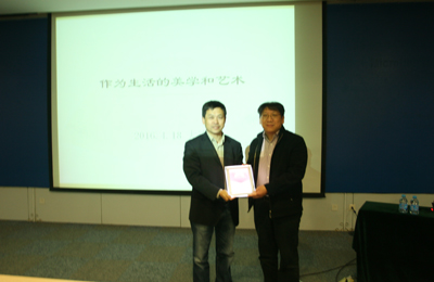 讲座中,袁新一开始就抛出了“美是人类的本能,艺术是人的天性”的观点,认为人人都是潜在的艺术家。如果说科学是对外部客观世界的探索,那么艺术和美则是人类对于生活和情感的表达。接着,袁新援引了陶器、石器、方鼎、雕像等古代人们的生活用品,阐述了艺术与生活的关系。他认为“艺术”这个概念是历史的产物,艺术本身离不开生产活动。而进入近代社会以来,职业艺术家的出现,使得“艺术”这个概念向更加专业的方向发展。随后,袁新又展示了大量油画、建筑、饰品等世界著名的艺术品,并根据其不同的风格进行了解读。最后,袁新还展示了利用现代数码相机拍摄的大量照片,他说,现代工具有助于创造更多的艺术作品,但是现代的美和艺术则需要“重新出发”,需要用心去创造。