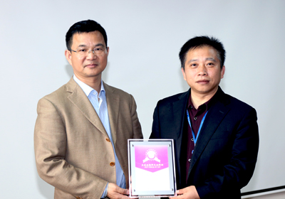 刘中民为丁云杰(左)颁发奖牌