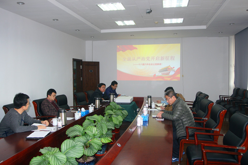 11月24日,研究所党委开展学习贯彻十八届六中全会精神专题中心组学习活动。全体党委委员参加,党委副书记吕雪峰带领全体委员学习了十八届六中全会公报,做了题为《全面从严治党开启新征程-十八届六中全会公报解读》的报告,从十八届六中全会的重大意义,十八届六中全会为全面从严治党作出的重大贡献、坚持不忘初心、继续前进,为全面从严治党作贡献三个方面谈了对全会精神的理解。