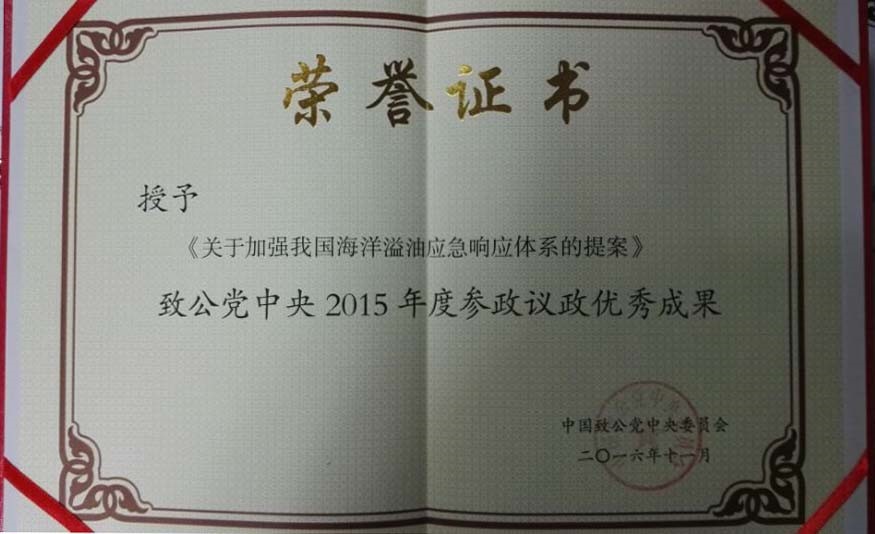 2016年11月,中国致公党召开参政议政工作研讨会,会议对参政议政成果进行了表彰,其中由中国科学院烟台海岸带研究所王传远副研究员执笔,经致公党山东省委会报送的《关于加强我国海洋溢油应急体系的提案》获评致公党中央2015年度参政议政优秀成果。