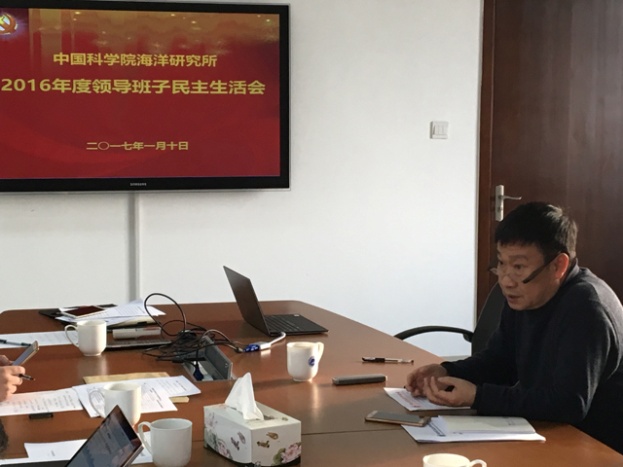 1月10日下午,中国科学院海洋研究所领导班子召开2016年度专题民主生活会,领导班子全体成员参加会议。沈阳分院分党组书记、副院长姬兰柱,院长助理、组织人事处处长毕伟出席会议?;嵋橛傻澄榧峭醴餐局鞒?。