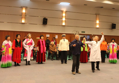在夕阳红小乐队的现场伴奏下,活动在歌伴舞《相逢是首歌》中拉开了序幕。离退休的男同志们也积极来到会场为活动助兴,男声四重唱《鸿雁》、男声独唱《青藏高原》、《二月里来》赢得大家的热烈掌声;女声独唱《我们的中国梦》,在优美的歌声中,唱响中国梦,表达爱国心;独舞《美人吟》、《九儿》温婉优雅,让观众们大饱眼福;男女声组合唱《香巴拉并不遥远》悠扬而欢快,表达了对美好生活的向往;朗诵《放飞中国梦》,感情真挚,激情飞扬,充满了感染力,将联欢会推向高潮;女声小合唱《万泉河水》,饱含着对祖国的无限深情,为联欢活动画上了圆满的句号。