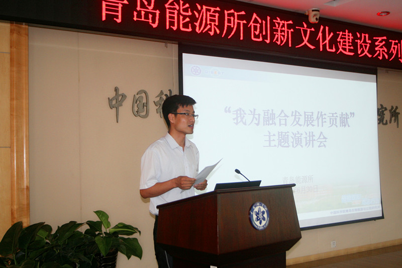 6月30日,为迎接建党96周年,研究所党委组织全体党员开展“我为融合发展做贡献”主题演讲会。此次演讲会是研究所党建与创新文化论坛系列活动的总结与表彰。文化论坛围绕“促进融合发展”专题,通过组织党委中心组专题学习扩大会、组织各支部开展学习刘伟平副书记讲话专题生活会,主题征文等系列活动,统一全体党员、职工对融合发展的认识。通过主题征文活动,一共征集了33篇文章,经各支部推荐,选拔邱建超、杨孟龙、董杉木、冯德鑫、李成、刘欣欣6位同志在主题演讲会上进行了汇报演讲。他们分别从管理、支撑、科研和在读研究生不同的角度讲述了对青能所和大化所融合发展的理解与认识,对未来发展的畅想和期望,表达了为推动融合发展努力奋斗的决心?;嵘匣苟?3名获奖的征文作者进行了表彰,发放了征文集。