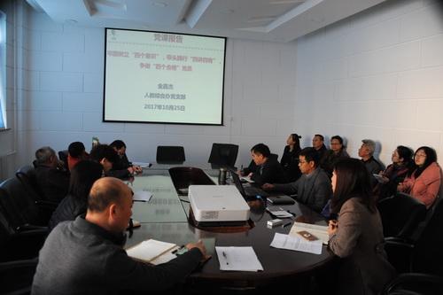 为了迅速掀起学习贯彻落实党的十九大精神的热潮,认真落实中科院党建工作领导小组关于开展“我在团队中的位置”主题讨论活动的要求,促进机关党员率先发挥好立足本职、真抓实干、凝心聚力的作用,2017年10月25日,中国科学沈阳应用生态研究所组织专题党课,沈阳生态所党委书记金昌杰以“牢固树立‘四个意识’,带头践行‘四讲四有’,争做‘四个合格’党员”为题作党课报告。沈阳生态所管理部门党员参加党课学习,并开展了主题讨论。