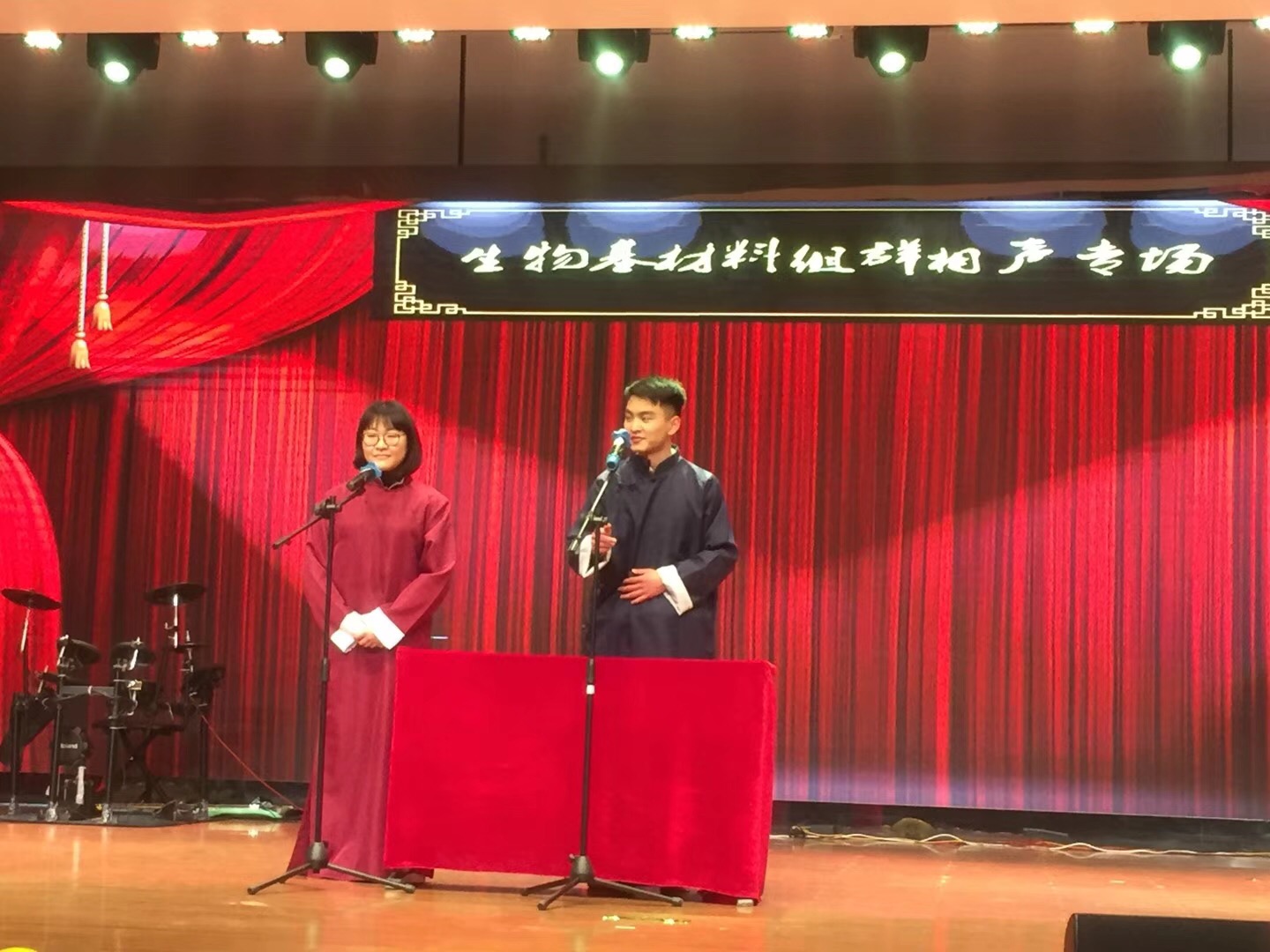 由大连化物所带来的新疆舞《我爱的人儿在新疆》拉开了联欢会的序幕。整台联欢会由17个文艺节目组成,集舞蹈、歌曲、相声、小品、诗朗诵、歌舞剧等于一体,形式多样。独唱《天边的骆驼》深情悠扬,二重唱《You raise me up》激昂高亢,《原乡人》、《月亮代表我的心》甜美醉人,乐队歌曲串烧嗨翻全场,小朋友们的歌舞表演活泼可爱;歌舞剧《多彩办公室》,舞蹈《时代在照唤》、《Panama》展现出研究所职工和学生朝气蓬勃、积极向上的精神风貌;相声《科研女博士》、视频歌曲《生科的意义》、《三句半》、小品《租个女友回家过年》、歌舞剧《年代秀》以诙谐幽默的方式讲述了科研工作者对工作、生活和人生经历的感悟以及对美好前程的展望;由八段锦爱好者带来《八段锦表演》、留学生代表带来的诗朗诵《面朝大海春暖花开》气势磅礴,赢得了台下观众的阵阵掌声,将祥和的节日气氛推向高潮。最后,晚会在以“爱”为主题的歌曲串烧中落下帷幕,通过现场观众投票产生了观众最喜欢的优秀节目,并在晚会进行了现场表彰。整台联欢会内容丰富,形式新颖,气氛热烈,精彩纷呈。大家在欢声笑语中辞旧迎新,扬帆起航,续写新的篇章。(文/王琳 图/研究所)