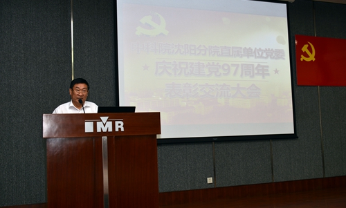 沈阳分院分党组书记、直属单位党委书记姬兰柱代表沈阳分院直属单位党委宣读了表彰决定,沈阳分院分党组成员、直属单位党委委员分别为获奖集体和个人颁发了奖牌与奖状。金属所王培,沈阳自动化所祝普强分别代表获表彰的先进党支部、优秀共产党员发言交流。