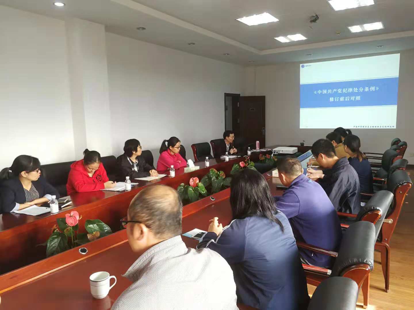《中国共产党纪律处分条例》(以下简称《条例》)对维护党章和其他党内法规、严肃党的纪律、坚持从严管党治党发挥了重要作用。党中央根据新的形势、任务和要求,于2018年8月18日印发了修订后的《条例》。为抓好《条例》的学习宣传和贯彻落实工作,支撑部门党支部于10月24日集中组织学习了新修订的《条例》,会议邀请研究所党委委员郑永红出席并就修订后的《条例》进行了解读,支撑部门党支部全体党员参加会议。 会上,郑永红就新《条例》的修订背景、主要特点、内容结构、解读要点等做了详实的介绍,并逐条解读了新旧《条例》的修订内容,用引入实例的方式全面细致的为党员同志进行了深入阐述,详尽解读了新《条例》政治性、时代性、针对性和深远意义。整个解读内容丰富、重点突出,具有很强的指导意义。郑永红强调要认真学习、严格执行《条例》,加强纪律约束,深刻领会《条例》的丰富内涵和核心要义,各位党员同志要切实增强“四个意识”,持续深入的学通、学懂、准确把握《条例》对党员的要求,把握政治底线和政治原则,以党章、党纪、党规严格规范和约束言行,自觉维护党中央的权威。