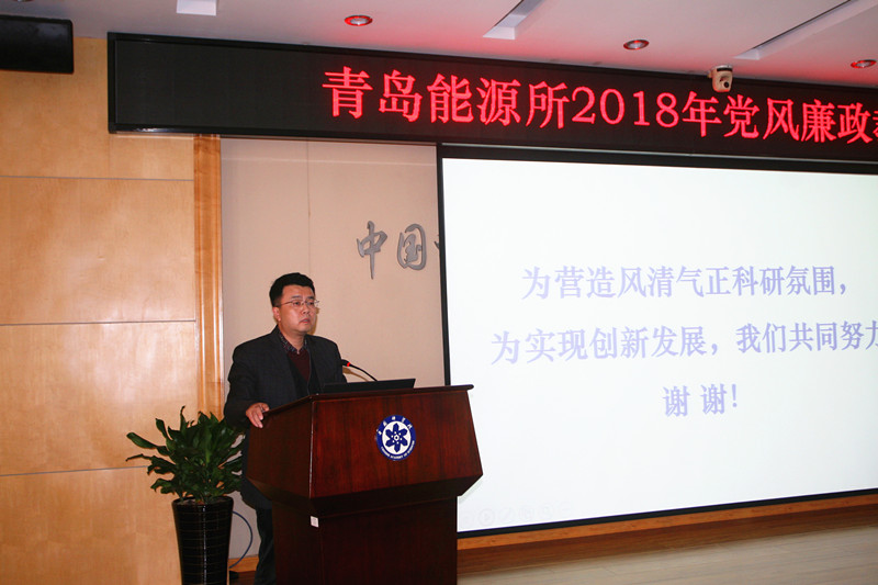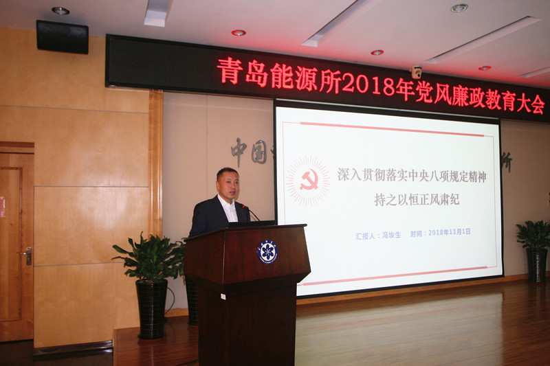 按照中科院党建工作领导小组办公室关于集中开展警示教育活动通知文件精神、根据研究所党风廉政建设责任制实施细则要求,11月1日,中国科学院青岛生物能源与过程研究所召开2018年党风廉政教育大会,研究组负责人、管理支撑部门负责人、管理部门全体人员、研究组财务助理等共计一百余人参加会议。党委副书记、纪委书记冯埃生做专题报告,党委书记彭辉到会并讲话?;嵋橛杉臀笔榧钦湃鸲鞒帧?/span>