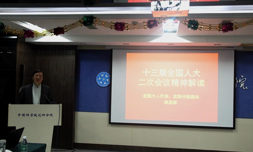 3月18日,沈阳分院传达十三届全国人大二次会议精神暨党课报告会在分院机关召开。十三届全国人大代表、沈阳分院院长韩恩厚传达会议精神。沈阳分院分党组书记、副院长姬兰柱,副院长马越红,分党组副书记、纪检组组长郭秀银以及机关全体职工参加了学习会议?;嵋橛缮蜓舴衷涸撼ぶ怼旃抑魅窝詈曛鞒?。