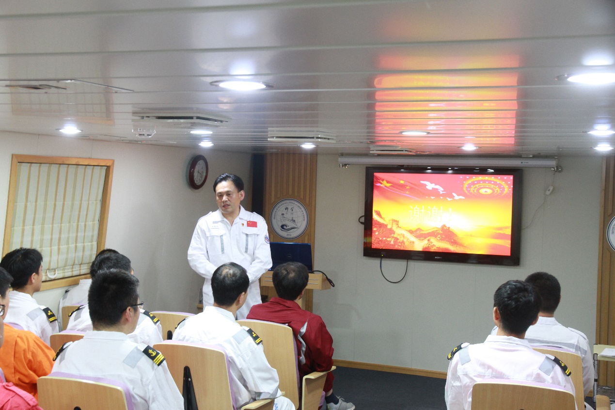 4月9日,正在西太平洋执行科考任务的“科学”号“海上堡垒”临时党支部开展“加强理论提升 做合格党员”主题党日活动,重温党的理论知识,并共同观看纪念毛汉礼先生百年诞辰记录片。党支部14名党员及3名入党积极分子参加活动,党委委员、临时党支部书记李雷溪同志主持活动。