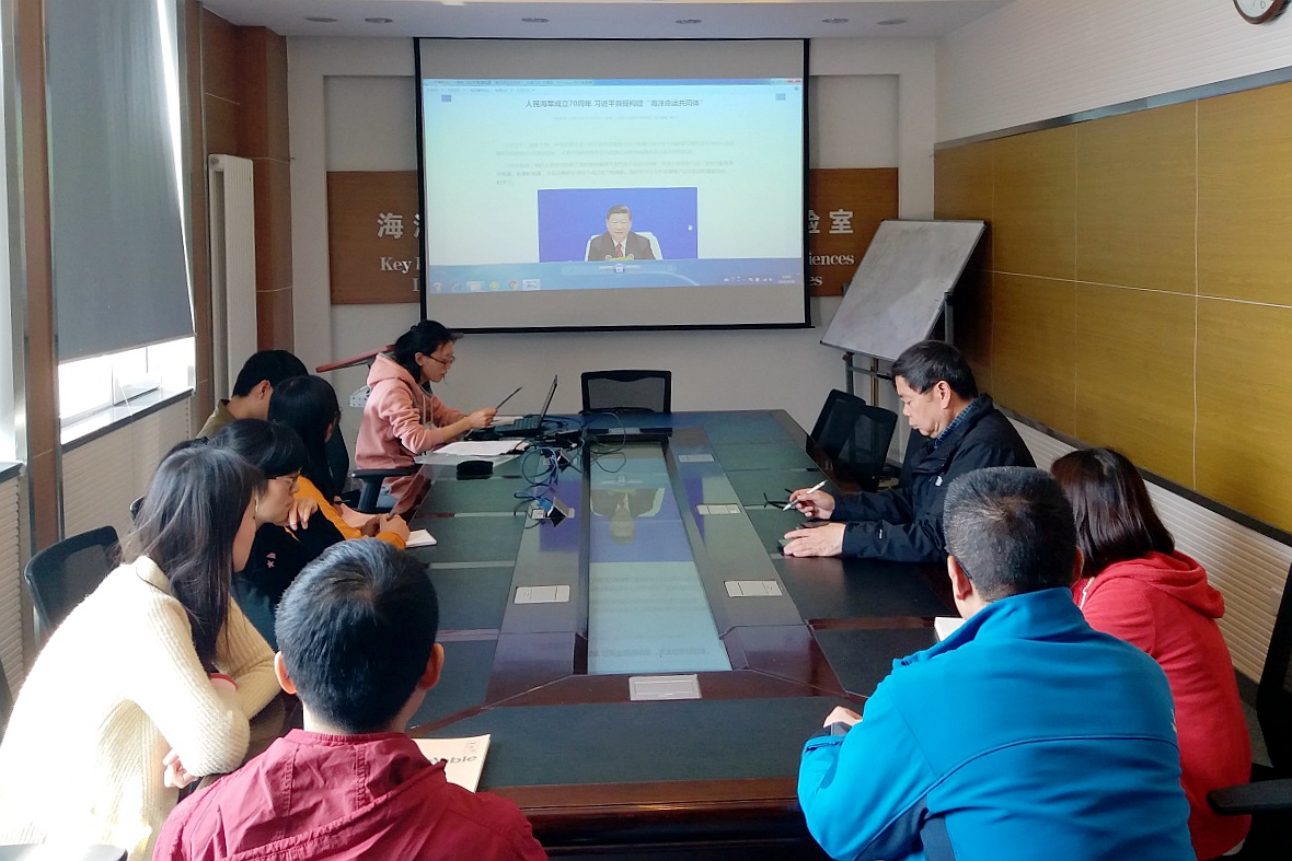 习近平总书记在人民海军建军70周年纪念活动上首次提出构建“海洋命运共同体”,为深入学习总书记的讲话精神,践行新思想,做出新成就,4月25日至26日,生态党支部以党小组为单位分别开展学习活动。