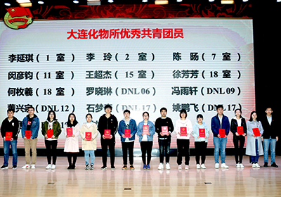 团委书记熊川男首先宣读了2018年度共青团中国科学院委员会“两红两优”表彰名单、共青团中国科学院大连化学物理研究所委员会“两优一先”表彰名单、以及共青团大连市委员会“两红两优”推荐名单。毛志远,党委委员、人事处处长孙军,熊川男、所团委副书记吴闯分别为获奖团队代表和个人颁奖。