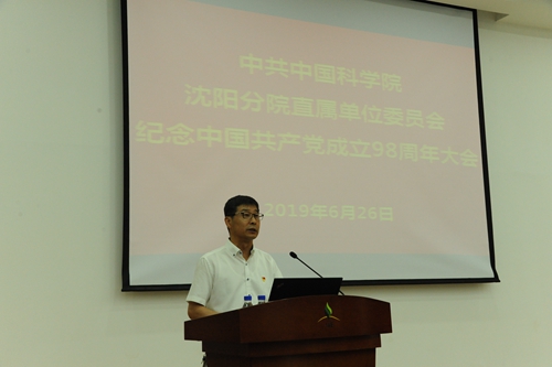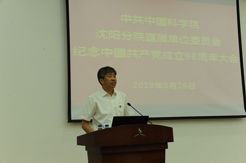 郭秀银代表沈阳分院直属单位党委发表讲话,带着大家回顾了我党98年的光辉历程,结合党的十九大精神,围绕“不忘初心、牢记使命”这一主题,为大家讲解了中国共产党在长期奋斗中形成的“为中国人民谋幸福,为中华民族谋复兴”的初心和使命,对系统单位贯彻落实不忘初心主题教育工作提出要求和期望。阐述了在国家发展的新的历史时期,在东北振兴的形势下,我们要以习近平新时代中国特色社会主义思想为指导,深入学习党的十九大精神,认真贯彻落实院党组决策部署,以实际行动来为新中国成立70周年、建院70周年献礼,深入推进“率先行动”计划,为2020年基本实现四个率先目标、为助力东北振兴、为建设世界科技强国和实现中华民族伟大复兴的中国梦作出新的更大贡献。