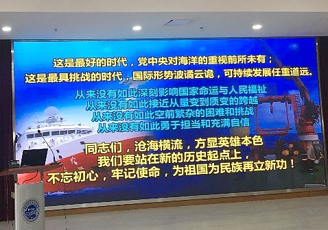 会议在雄壮的国歌声中开幕。王凡同志在烟台海岸带所通过同步视频形式作了题为《不忘初心,牢记使命——服务国家海洋高质量发展》的专题报告。他结合自己参加6月17日至19日“中科院2019年所局级党政正职专题培训班”经历,从“深刻领会‘不忘初心,牢记使命’主题教育的重大意义”“不忘初心,牢记海洋科学发展的历史使命”“真抓落实,勇做新时代科技创新的排头兵”三个方面进行了报告。他强调,为中国人民谋幸福,为中华民族谋复兴,是中国共产党人的初心和使命。海洋所主题教育紧密围绕中科院海洋大科学研究中心建设、“一带一路”海洋科技合作行动和山东省新旧动能转换等方面真抓落实。作为所长,将党政密切配合,不断锤炼品行作风,共同做好表率,将时刻牢记新时代国家战略科技力量的历史使命,在更高起点、更高目标上推动中科院海洋大科学中心、两所融合及研究所改革创新发展,共同带领研究所处级以上领导干部落实院党组提出的“大格局、有本领、敢斗争、守底线、作表率”的“十五字要求”,努力把工作放到国家改革发展的大形势下去应对,放到世界科技发展的大背景下去谋划,放到中科院发展的大格局下去思考,学以致用,知行合一,鼎力推动海洋科技服务国家海洋高质量发展。
