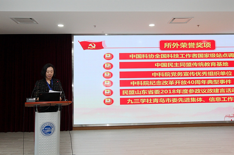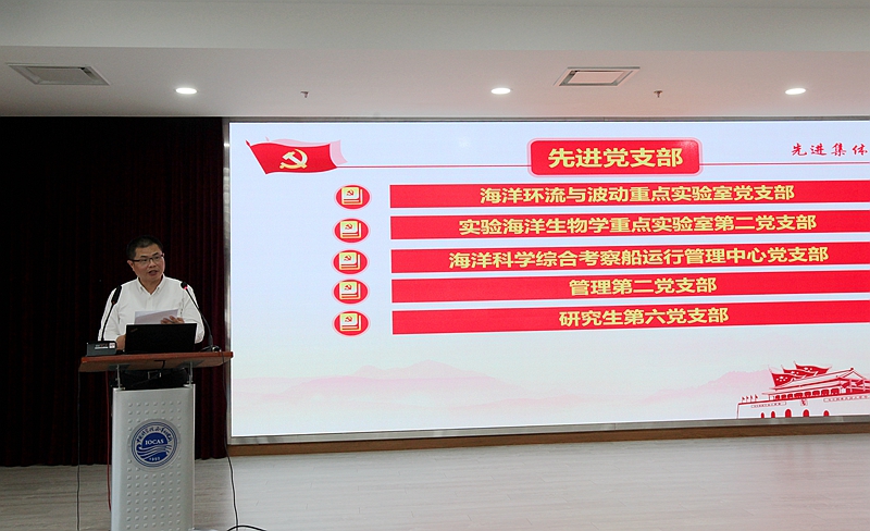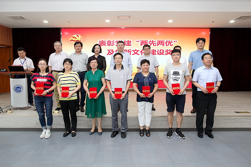 庆祝大会表彰了2018-2019年度党建工作获所外表彰荣誉奖项和2018年度党建工作“两先两优”及创新文化建设奖。党委委员张盾宣读了《关于表彰奖励2018-2019年度党建工作获所外荣誉奖项的通知》,党委委员曾志刚宣读了《关于表彰2018年度“两先两优”及“创新文化建设奖”的通知》。海洋所原所长孙松及与会党委委员、纪委委员共同向海洋环流与波动重点实验室党支部等5个先进党支部、海洋地质与环境重点实验室党支部等5个创新文化建设奖党支部、实验海洋生物学重点实验室第一党支部党小组等6个先进党小组,以及25名优秀共产党员、5名优秀党务工作者分别颁发了荣誉证书。