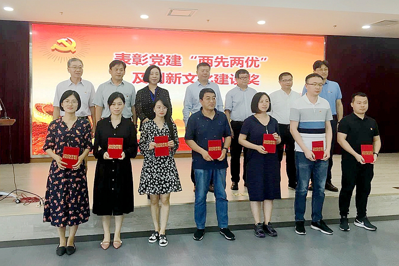 党委委员张盾、曾志刚宣读2018-2019年度党建工作获奖文件