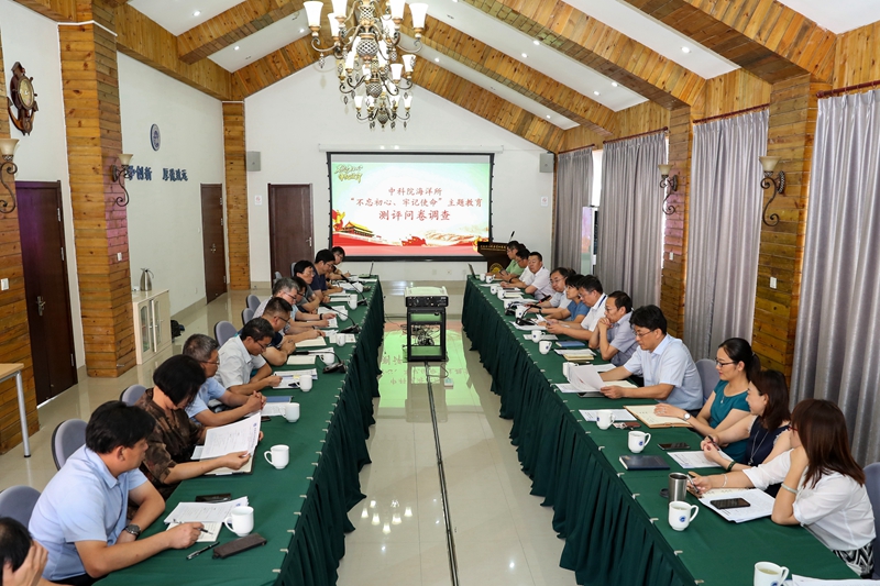 会议首先由王辉同志作了海洋所“不忘初心、牢记使命”主题教育领导班子专题民主生活会情况通报,介绍了专题民主生活会总体情况及主题教育中征求到的针对领导班子的意见建议及整改措施。通报结束后,在杨宏主任指导下,与会人员填写了《中国科学院主题教育评测表》,对海洋所主题教育开展情况进行了测评?;嵋樽詈螅詈曛魅未碓褐魈饨逃傅甲榉⒈砹俗芙峤不?,她指出:海洋所领导班子在上午召开的民主生活会上分享了主题教育收获,进行了深刻的自我剖析,开展了诚恳的批评与自我批评,整个所领导班子团结务实,心顾大局,心往一处使,敢担当、能作为,是一次高质量的专题民主生活会。从民主生活会和刚才的通报会可以看出,海洋所领导班子高度重视本次主题教育。在学习教育方面,除了领导班子注重学习外,各党支部也通过支部大会、主题党日、讲党课等方式开展了学习。在调查研究方面,海洋所领导班子成员及中层领导干部全部开展了调查研究,撰写了调研报告。在检视问题方面,所领导班子能够直面问题,彰显了解决问题的勇气和决心。在整改落实方面,问题责任分解明确,措施得当。整体来看,海洋所本次主题教育重视足、目标准、行动快、措施实、效果好,是一次质量非常高的主题教育。