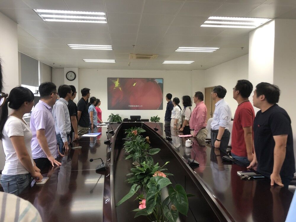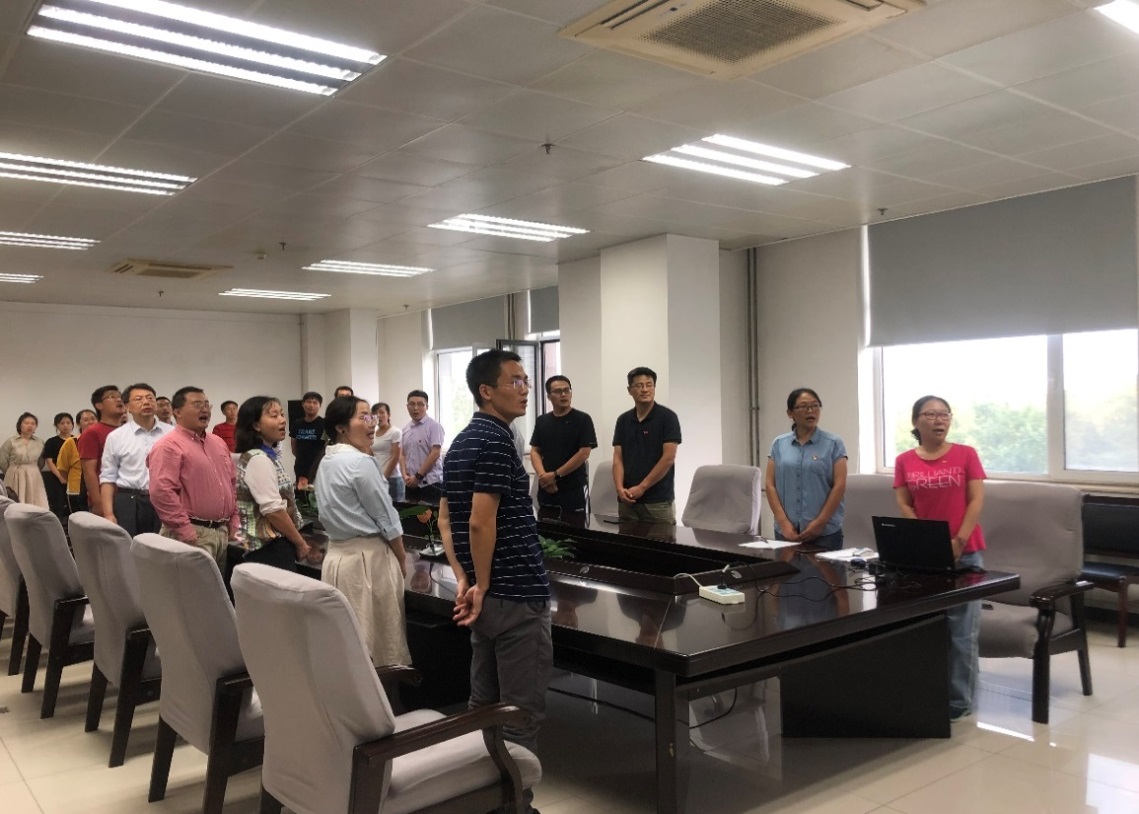 本次活动在全体人员嘹亮的国歌声中开始,吕剑对本次活动的组织背景做了简单介绍,并号召支部党员同志弘扬爱国奋斗精神,坚守“创新科技、报国为民”初心开展科研工作。随后,全体成员观看了彩色影像资料《开国大典》,并合唱了《歌唱祖国》、《没有共产党就没有新中国》和《我和我的祖国》三首歌曲,用歌声表达了科研工作者对祖国的热爱之情。